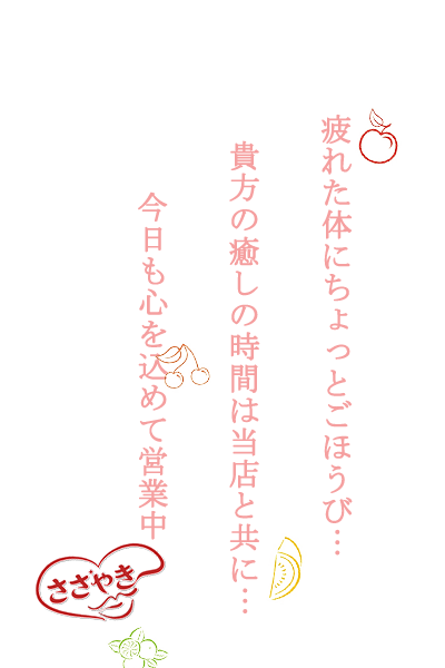 当店では、アロマオイルの効能と当店自慢のセラピストによるリンパマッサージの相乗効果による、癒しのひとときをお客様お一人お一人にお届けしております、自然で心やすらぐ優美な香りを、施術中はもちろんご帰宅お休みになってから翌日朝目覚めでまで楽しんで頂けます、どうぞゆっくりご堪能ください。